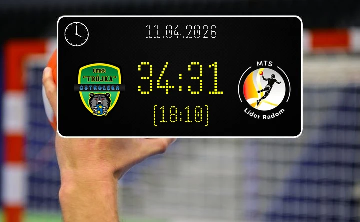 UMKS Trójka Ostrołęka wygrał z MTS Liderem Radom 34:31 w meczu 22. kolejki I Ligi Mężczyzn (Grupa C), a sobotnie popołudnie w Ostrołęce przyniosło kibicom dokładnie to, czego oczekiwali – dużo walki, sporo emocji i bardzo ważne trzy punkty. Gospodarze, którzy przed tym spotkaniem zajmowali 12. miejsce w tabeli z dorobkiem 23 punktów, sprawili niespodziankę ekipie z Radomia , plasującej się na 6. pozycji i mającej 37 oczek. To była wygrana tym cenniejsza, że Trójka grała w okrojonym składzie, a mimo to potrafiła przechylić szalę na swoją stronę.