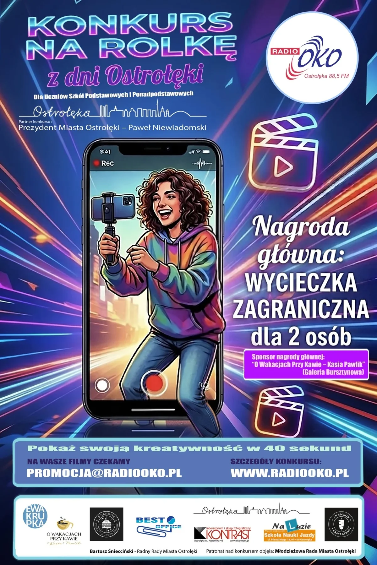 Konkurs jest skierowany do uczniów szkół podstawowych i ponadpodstawowych, więc to propozycja dla osób, które lubią nagrywać, montować i pokazywać świat po swojemu. Partnerem konkursu jest Prezydent Miasta Ostrołęki Paweł Niewiadomski, a patronat nad wydarzeniem objęła Młodzieżowa Rada Miasta Ostrołęki.